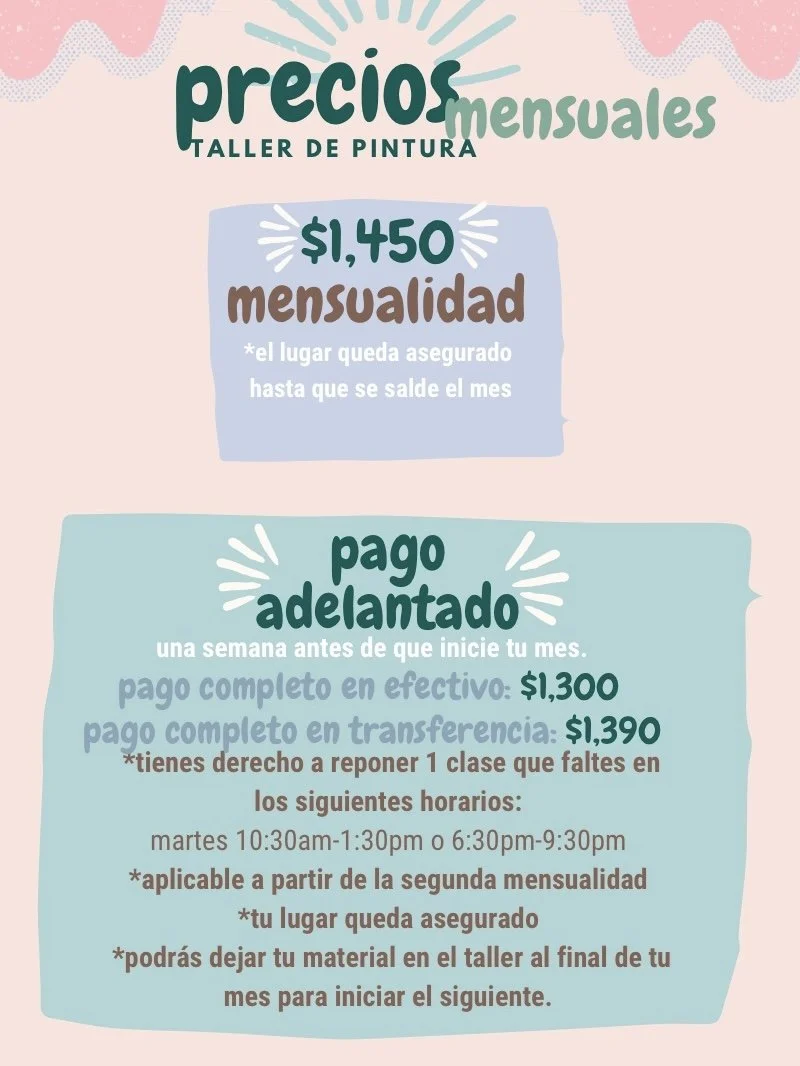 martes 10:30am - 1:30pm (sesión de 3 horas) - $1,450 mensualidad